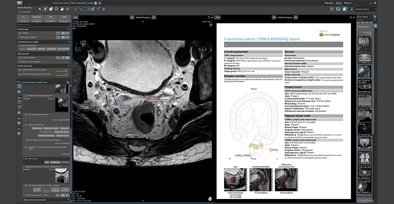 mint Lesion guides users through the reading process and ensures that all relevant information is collected in accordance with e.g. ACR-RADS classification, TNM guidelines or criteria for therapy assessment. It enables a clear and consistent documentation of the imaging information and significantly improves the completeness of the findings.