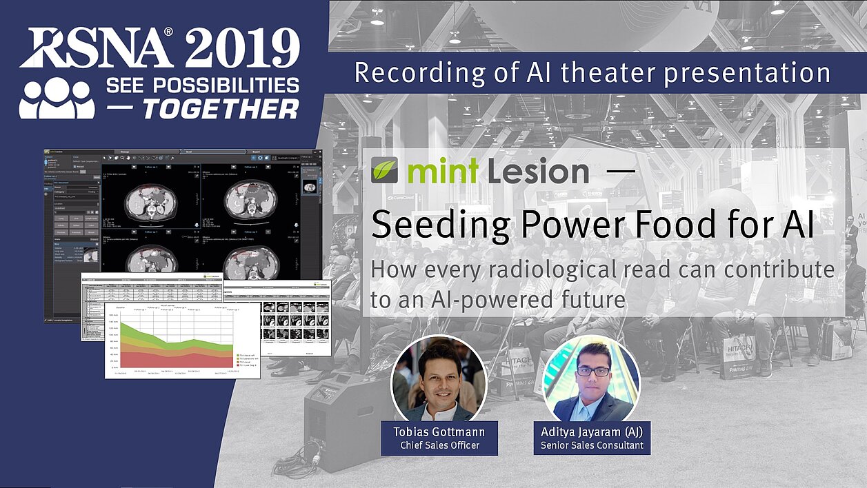 At this year’s RSNA, Mint Medical presented its AI approach to the audience at the AI theater. Tobias Gottmann and Aditya Jayaram highlighted how every radiological read can contribute to an AI-powered future by seeding power food for AI.