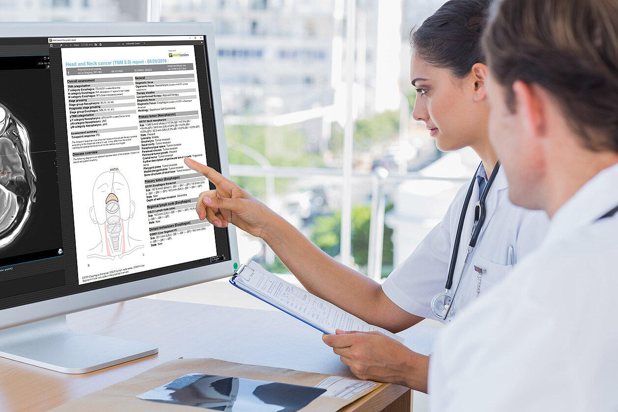 Whether in a clinical routine or a clinical trial setting, mint Lesion™ reports are standardized, criteria-compliant, and comprehensive. With mint Lesion™, radiologists can transform images into a digital stream of highly structured and quantitative diagnostic data. Structured reports generated by mint Lesion™ substantially alleviate referring physicians' cognitive burden, saving time and supplying them with reliable information that fosters data-driven diagnosis and therapy decisions.
