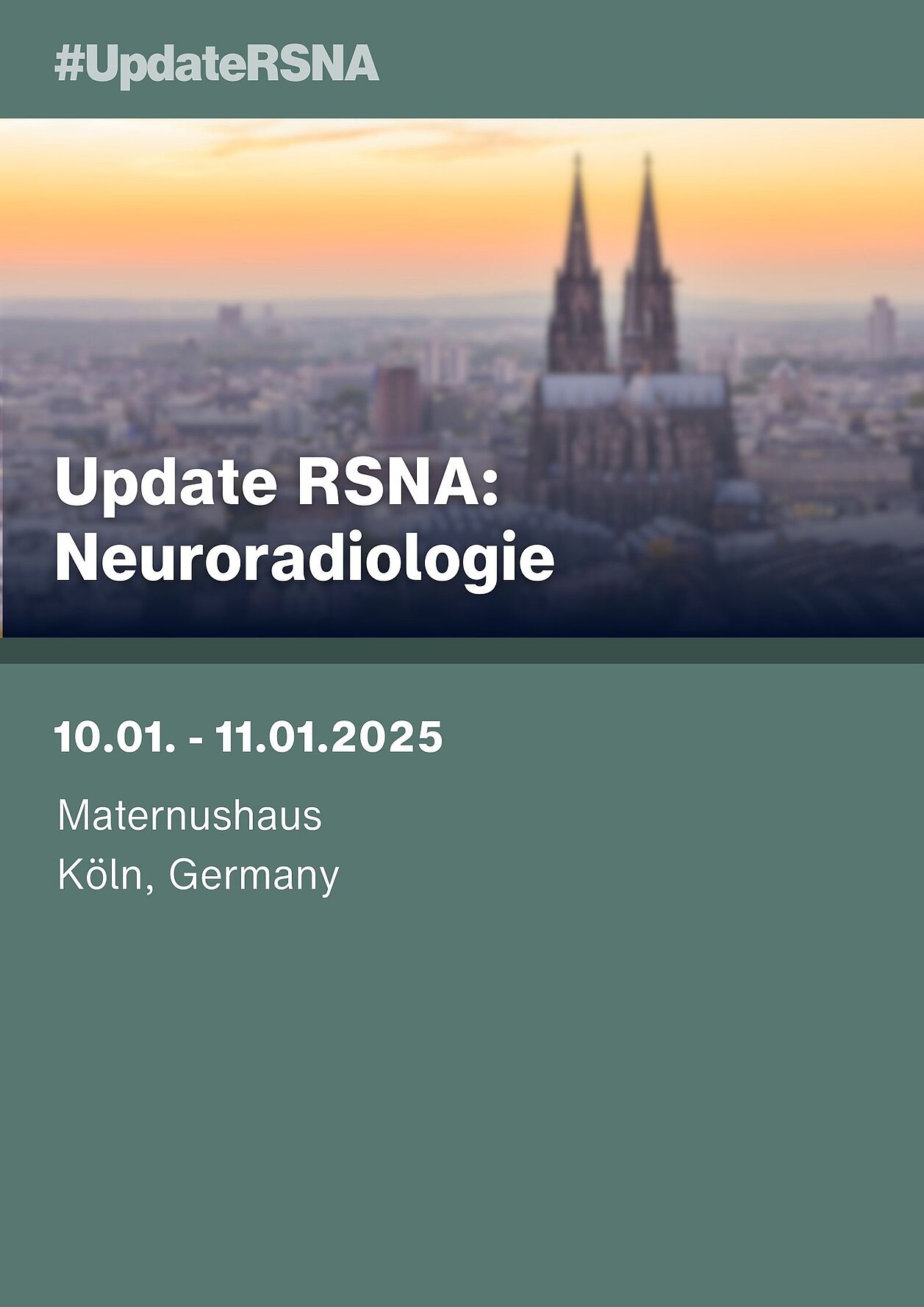 Join us at the Radiological Diagnostics Seminar: "RSNA Update – Neuroradiology," hosted by the University Hospital of Cologne's Institute for Diagnostic and Interventional Radiology on January 10–11, 2025, at the Maternushaus in Cologne. This event will feature expert discussions on the latest radiological innovations and their impact on patient-centered care.